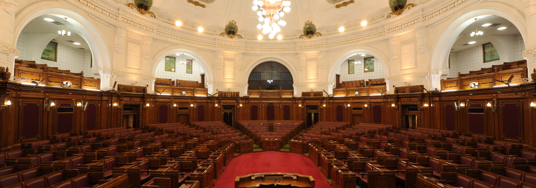गुम्बद के नीचे अष्टकोणीय चेम्बर अर्थात मुख्य हाल बना है। इसकी वास्तुकला अत्यन्त ही आकर्षक पच्चीकारी शैली में है। हाल की गुम्बदीय आकार की छत में जालियां तथा नृत्य करते हुए आठ मोरों की अत्यन्त सुन्दर आकृतियां बनी है। इसी चेम्बर में विधान सभा की बैठकें होती है। माननीय सदस्यों के लिए चेम्बर के दोनों तरफ एक-एक बड़ी लाबी है।