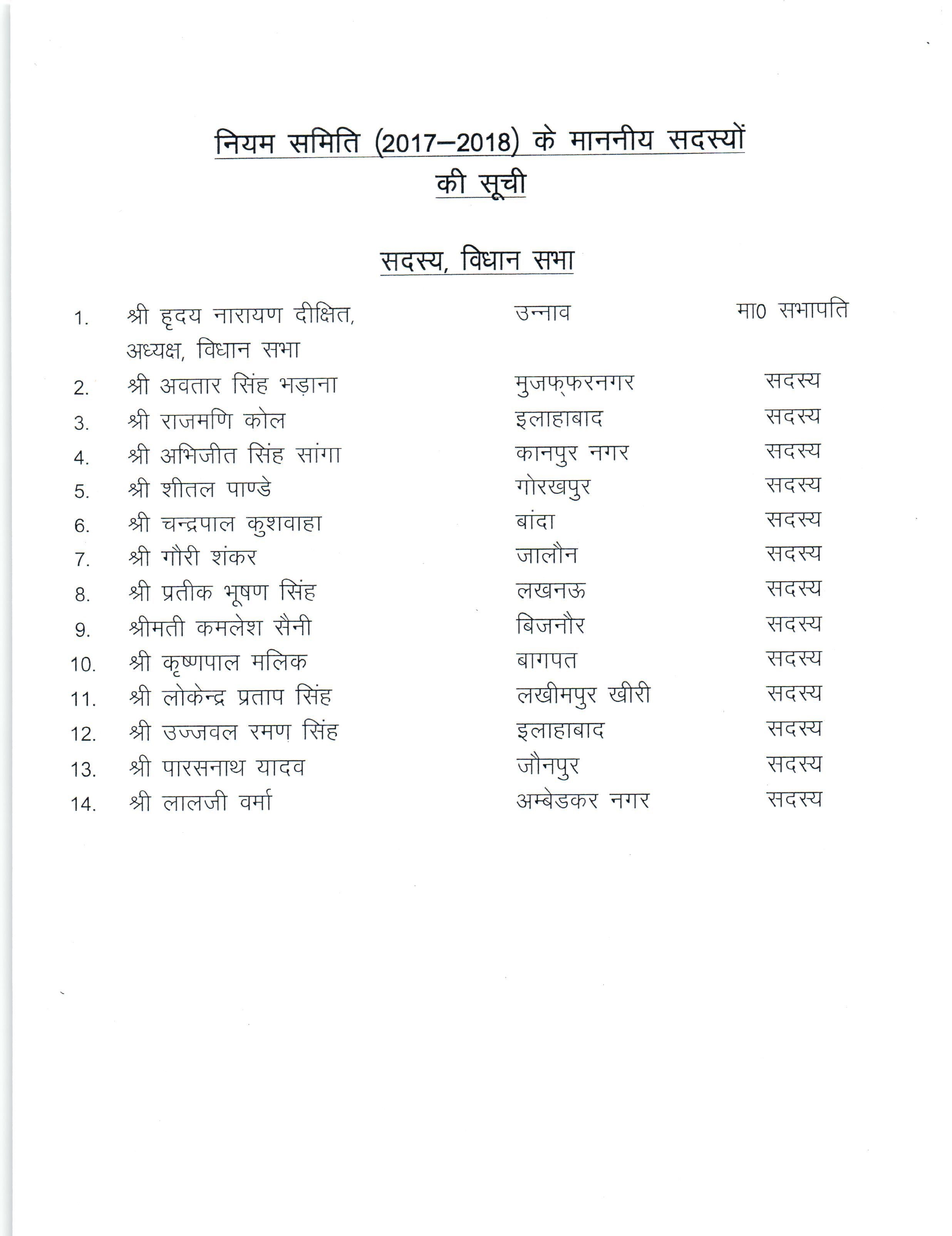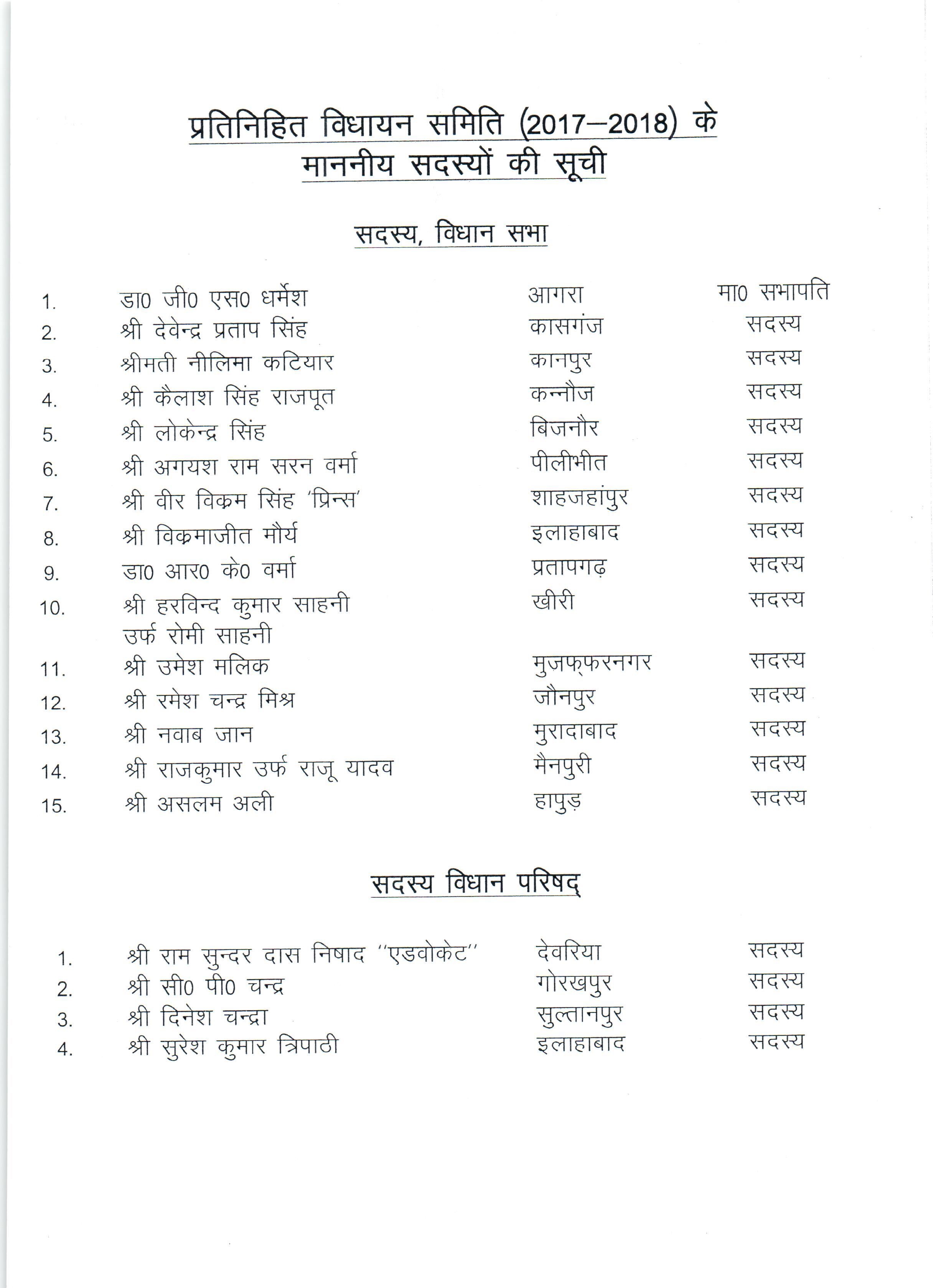 वर्तमान सार्वजनिक उपक्रम एवं निगम संयुक्त समिति के सदस्यों की सूची(2017-2018)
